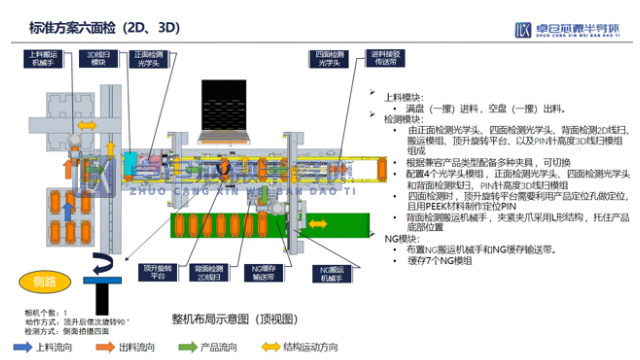 这套自动化流程涵盖了产品处理的全环节:首先借助多面检测能力,通过多个面的视觉检测来确保单个产品的质量;随后进行等级分选,将不同产品全自动分到对应通道,全程可追溯;之后进入分选摆盘环节,按要求把不同功能模块放入吸塑盘,同时打印对应测试数据;最后是自动包装下线,根据模块系列柔性化密封装盒,与系统数据比对绑定后完成包装。
